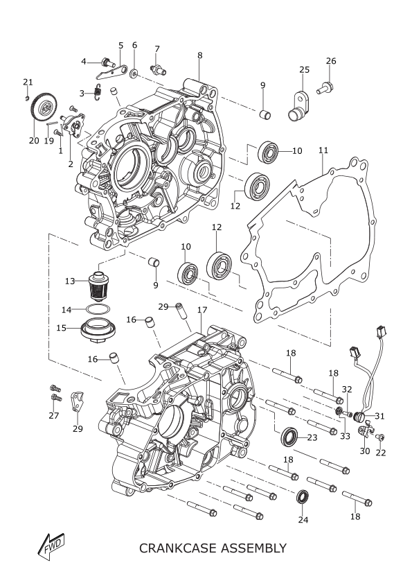 CRANKCASE LH, RH & OIL PUMP ASSY.